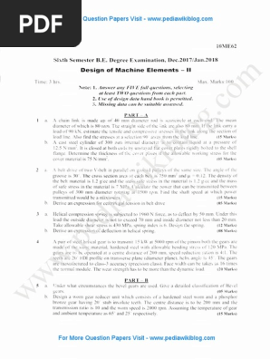 20 rows Students who are searching for VTU Question Papers can find the complete list of Visvesvaraya Technological University VTU Bachelor of Engineering BE Sixth Semester Design of Machine Elements - II Subject Question Papers of 2006 2010 2015 Schemes here. In this page you can see and download 6TH SEM Mechanical engineering CBCS scheme VTU Previous Years Question Papers in pdf. 5th Sem VTU Old Question Papers of following subjects.